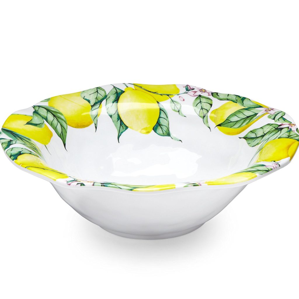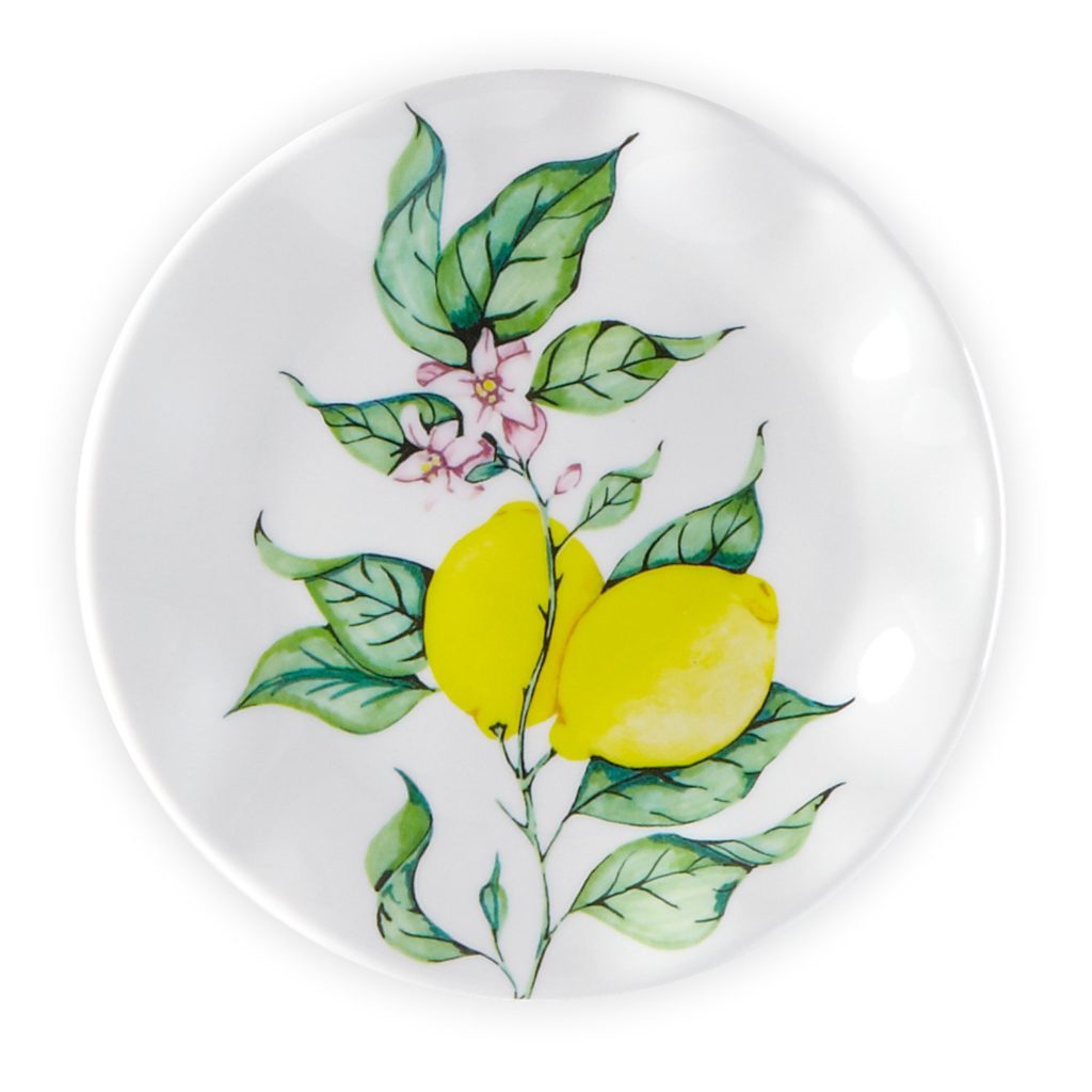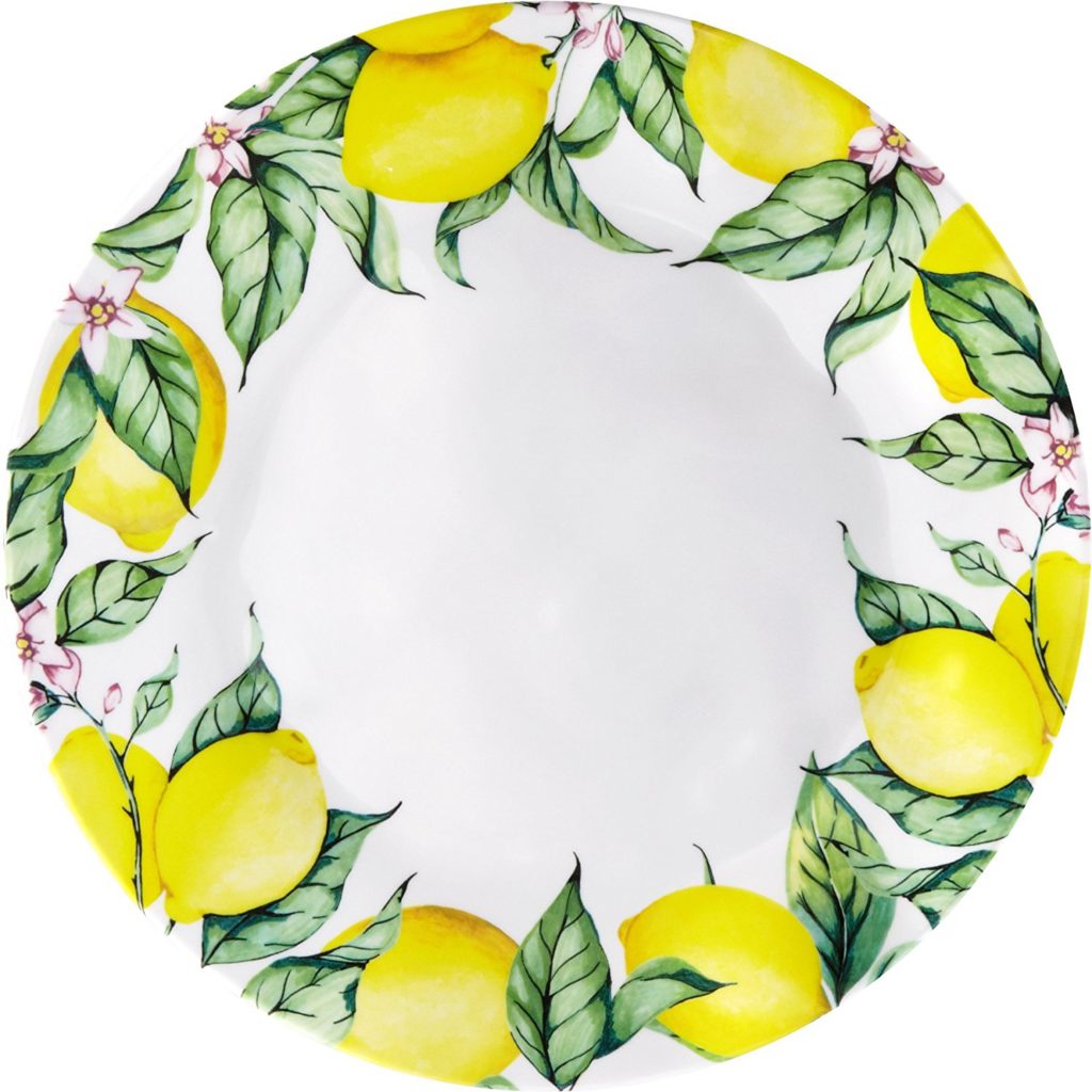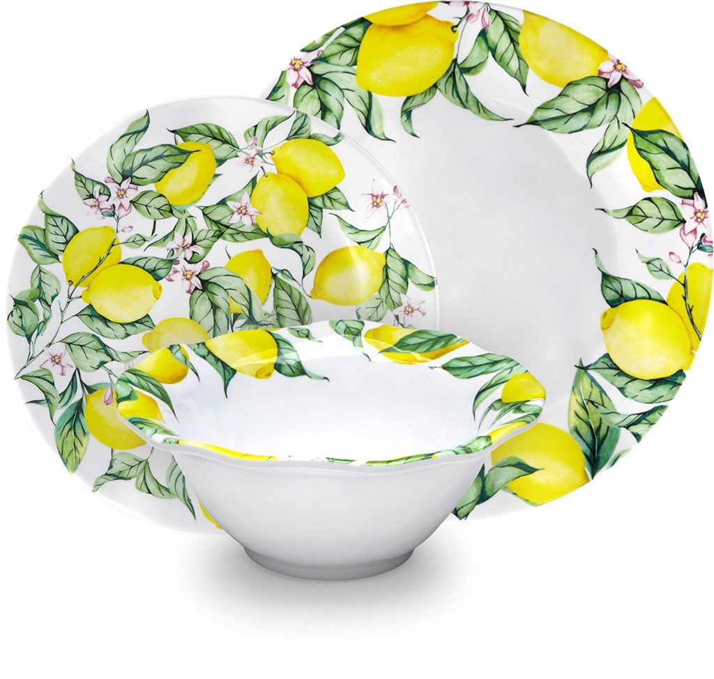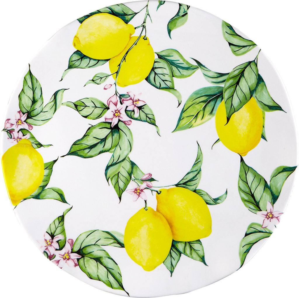 We wanted to show you these lovely citrus-themed melamine dishes you can use to serve meals outdoors – perhaps in your backyard or on your patio. They’re melamine – dishwasher safe, sturdy and serviceable.