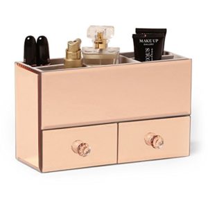 This mirrored, Rose Gold jewelry organizer would sit perfectly on your vanity and even has two drawers for small items.