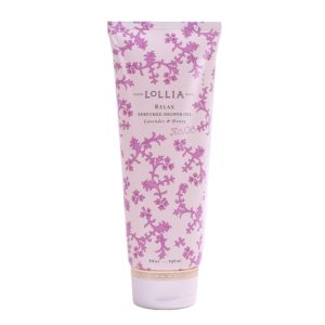 This is Lollia’s Relax shower gel, perfumed with lavender and honey.