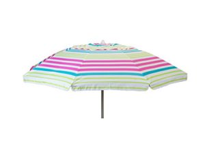 Here is a slightly different style, 7 foot round umbrella for those who enjoy happy colored stripes. The lower part of the pole has a sand screw attached.