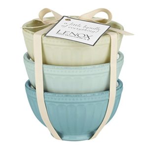 This week on Citron, we have added this charming line of stonewear from Lenox. We love the soft colors, perle edging details and the slightly distressed finish. I find this three piece set of bowls hard to resist!