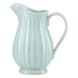 I love the shape and size of this pitcher. The large, heart shaped handle would make for easy pouring of your beverages. All of these pieces from the French Perle Groove Everything Collection are made from dishwasher and microwave safe stoneware.