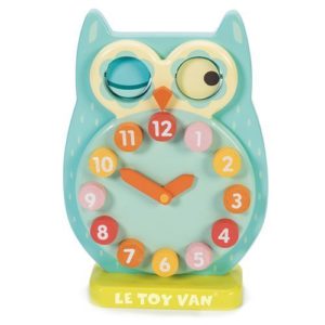 Of course this darling wooden owl clock doesn’t really tell time. But how much fun Baby will have exploring its eyes and knobs?